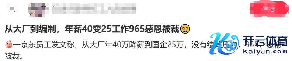 一位网友在大厂责任,但因为年龄相比大,被公司裁人,之后去到国企上班,诚然年薪莫得畴昔高,然而责任相对嘱托,不需要经常加班熬夜赶技俩,不会太疲顿,有时候不错珍藏我方的体魄和奉陪我方的家东谈主。