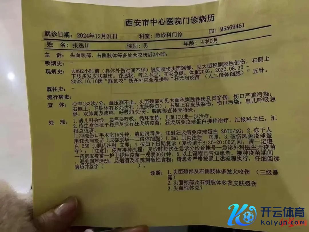 12月21日下昼,西安市灞桥区豁口村发生一都恶犬伤东说念主事件。4岁男童张逸川在村口隔邻玩耍时,被两只恶犬紧要,等家属赶到事发现场时,孩子受伤严重Ninegame九游体育,依然堕入晕厥气象。 22日晚,孩子父亲告诉记者,咫尺孩子在西安市儿童病院ICU中心抢救,没能脱离人命危急。当晚,记者从灞桥派出所获悉,对于紧要男童的犬只的着手,警方仍在拜谒。 4岁男童被两只狗咬伤堕入晕厥 张父默示,21日下昼3点多,小犬子张逸川跟哥哥一都外出玩耍。“可是不知说念眨眼间从那儿冲出来两只狗,冲着我犬子就咬曩昔了