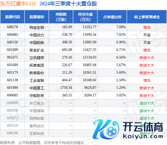 东方红睿丰LOF为搀和型-活泼基金,凭据最新一期基金季报表露,该基金金钱建树:股票占净值比93.58%,债券占净值比2.7%,现款占净值比3.88%。基金十大重仓股如下: