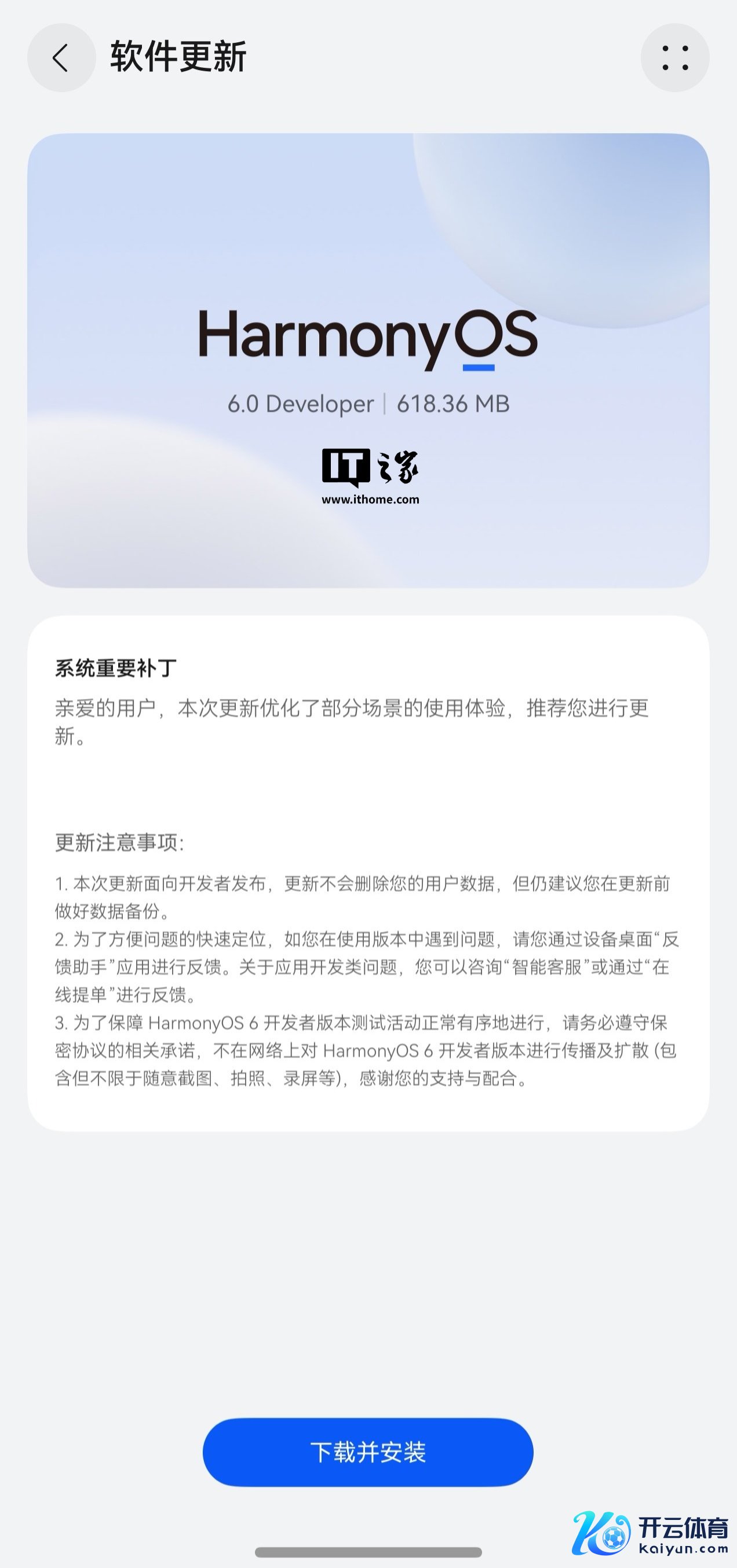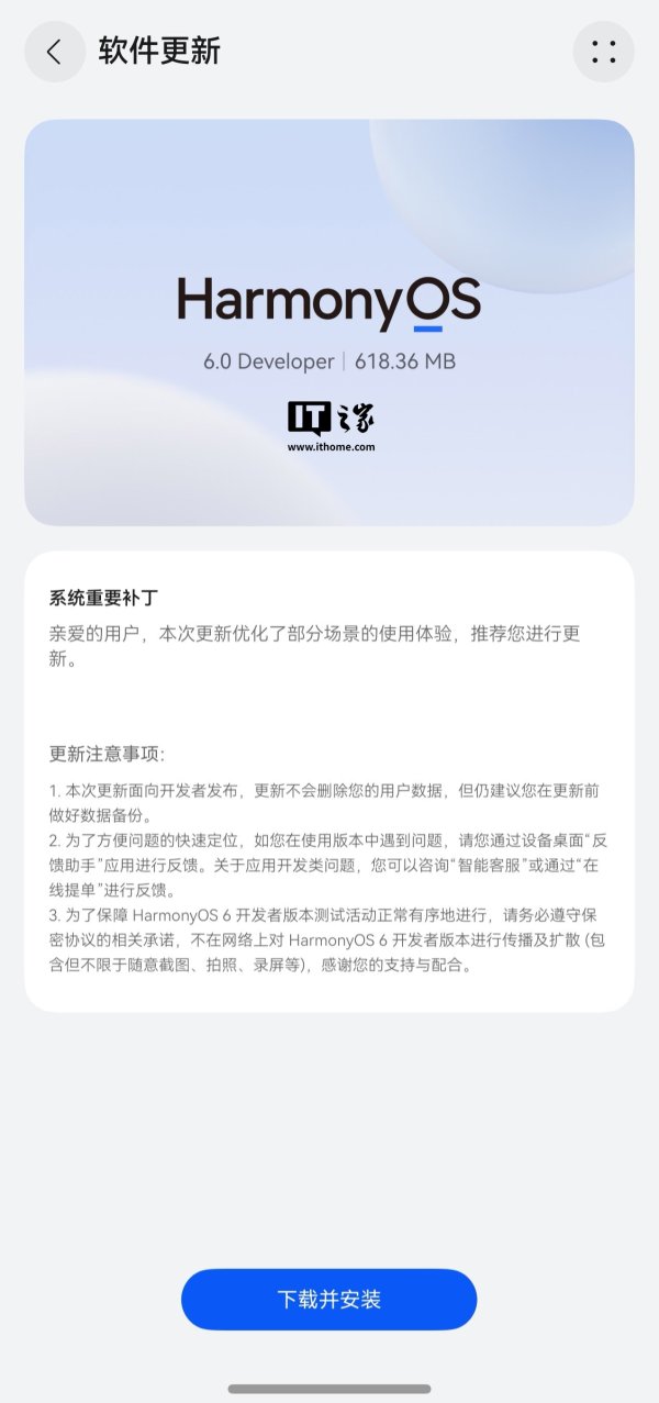 IT之家 10 月 9 日音讯,据用户响应,华为发布了鸿蒙HarmonyOS 6.0 Developer 系统关键补丁,大小约 618.36MB,优化了部分场景的使用体验。
